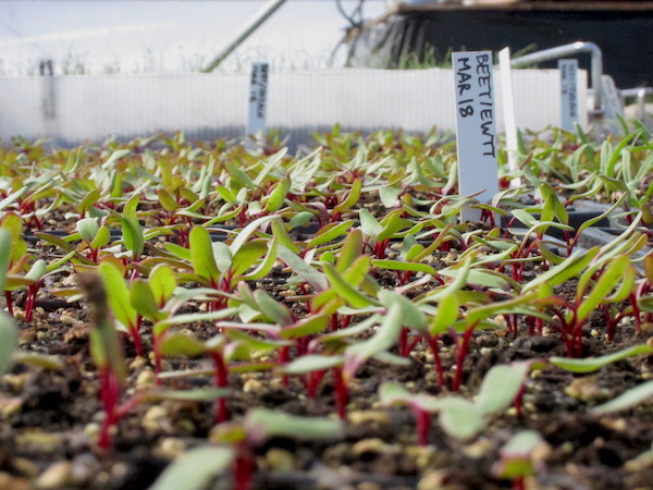 So far the cool weather has not led to any setbacks in our production schedule, though like everyone else we are a bit weary of the snow. We had some trouble getting beets and spinach established last spring (which was also cold), so this year we are transplanting the first generation of these crops into our field tunnels to ensure good yields. With warm weather in the forecast, we predict that we’ll be pulling the plastic cover over the field tunnels early next week and will be transplanting soon thereafter. We expect to be planting the first beds of sugar snap peas the week of April 20th.