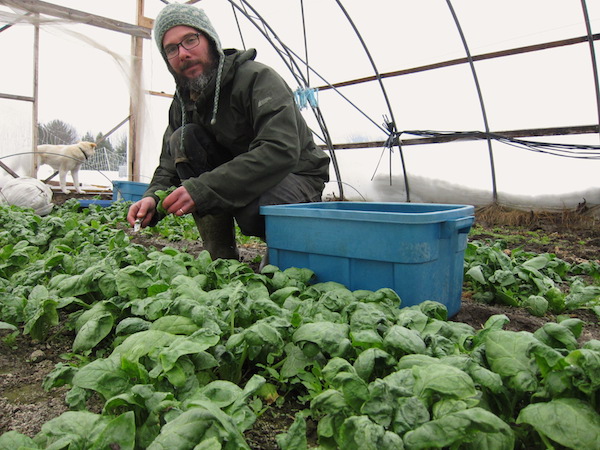 Tomatoes, greens and herbs are well on their way for our seedling sales in late April and early May. The spinach has woken up from its winter slumber and we’re harvesting the first crop for the Wakefield market this week. Natalie and Caleb, our farm workers, will be arriving from Halifax in late April, provided they can dig their way out of the snowdrifts!